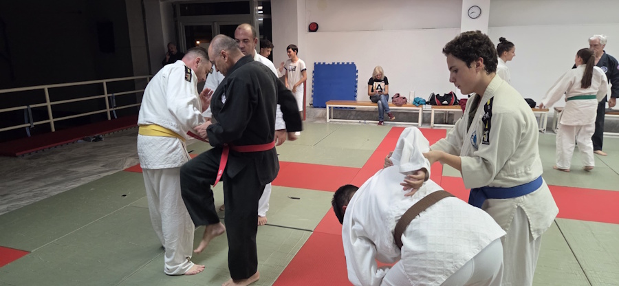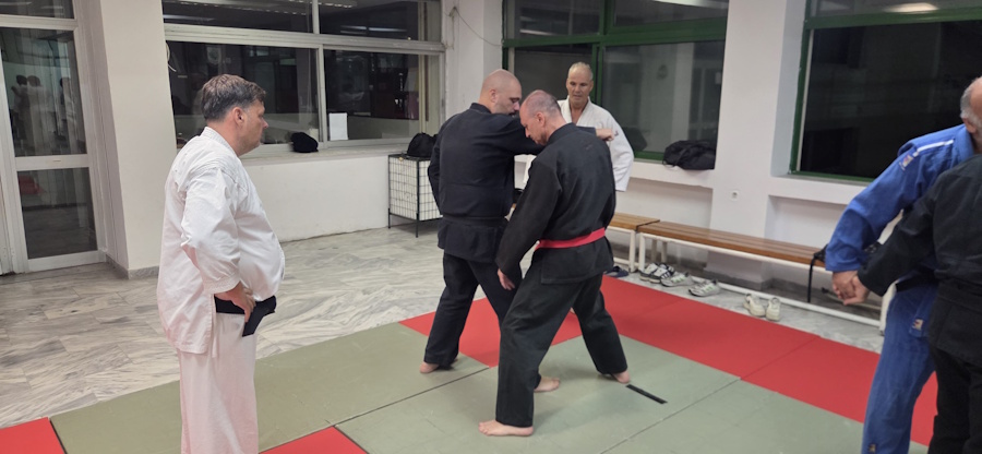Die Zahl 100 spielte beim Besuch von Josef und David Djaković aber auch hinsichtlich der Erwartung an das Training eine große Rolle: Das Training – das stand schon mal fest – sollte auch in dieser Woche wieder "zu 100 Prozent" im Mittelpunkt stehen. Ziel auf beiden Seiten war es, die Vermittlung von Wissen über das Jiu Jitsu möglichst gut zu gestalten, und zwar durch Lehren und Lernen. Durch die Vorerfahrungen und das über Jahre hinweg aufgebaute Vertrauen sollte dies ein Leichtes werden. Leicht fiel es beiden Referenten auch, die zum Teil hochkomplexen Techniken aus den verschiedenen Bereichen des Technikkanons des Deutschen Jiu Jitsu Bundes den Jiu Jitsuka aus Kavala zu vermitteln, regelmäßiges Üben und Verinnerlichen werden hierbei vorausgesetzt.