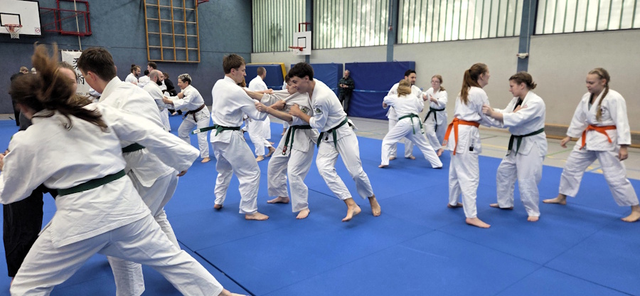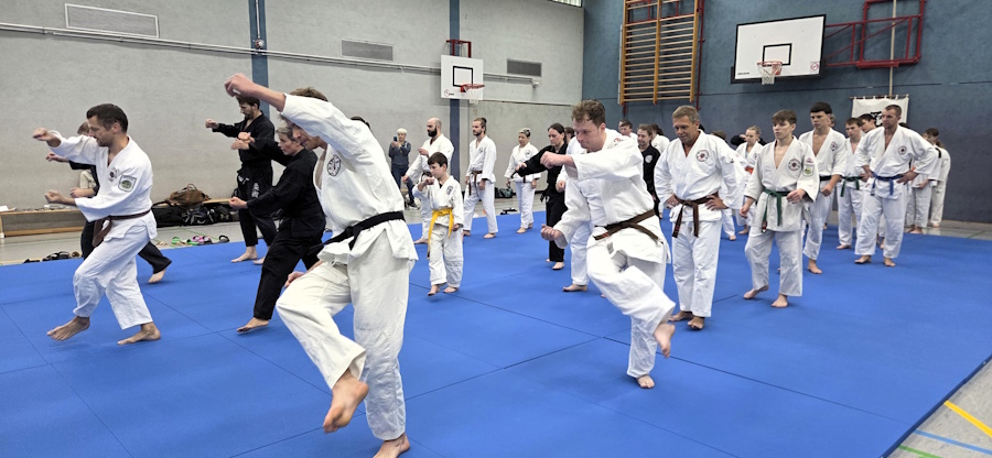 BUJINDO Mülheim ein Wurflehrgang des Deutschen Jiu Jitsu Bundes statt. Die Referenten David und Marijo Djaković leiteten den Lehrgang und boten den rund 40 Teilnehmerinnen und Teilnehmern aller Altersklassen und Graduierungen ein abwechslungsreiches und lehrreiches Training.