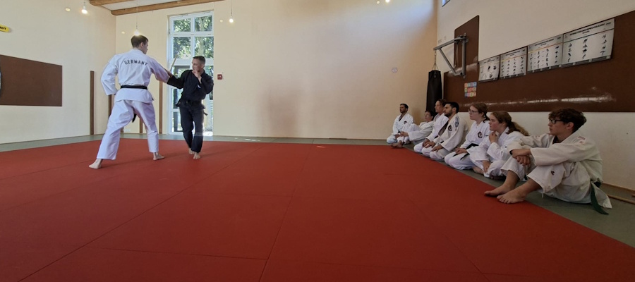 Zanshin Dojo des VFB Erftstadt zu einem Lehrgang zum Thema Waffenabwehren.